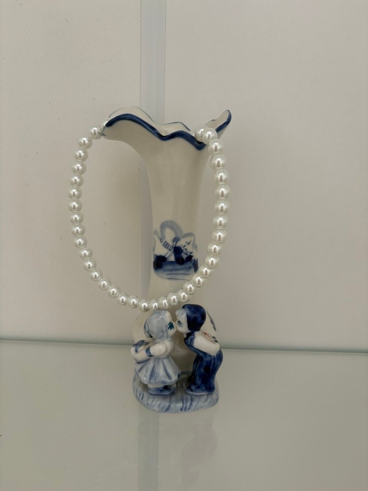 Beyaz boncuklu incilerden oluşan midi uzunlukta kolye, nakışlı detaylarla romantik geceye uygun. Modern klasik ve Paris tarzını yansıtıyor.