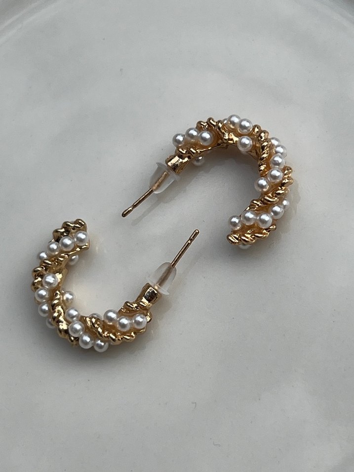 Mini uzunlukta, boncuk işleme inci detaylı altın renkli modern klasik küpe, düğün için uygun. ✨