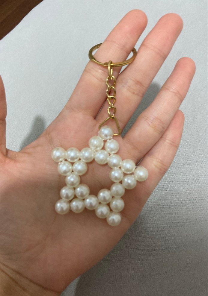 Bohem tarzda, beyaz boncuklardan oluşan yıldız şekilli anahtarlık, altın renkli halkaya bağlıdır. Anahtarlarınıza pastel dokunuş katar. ✨