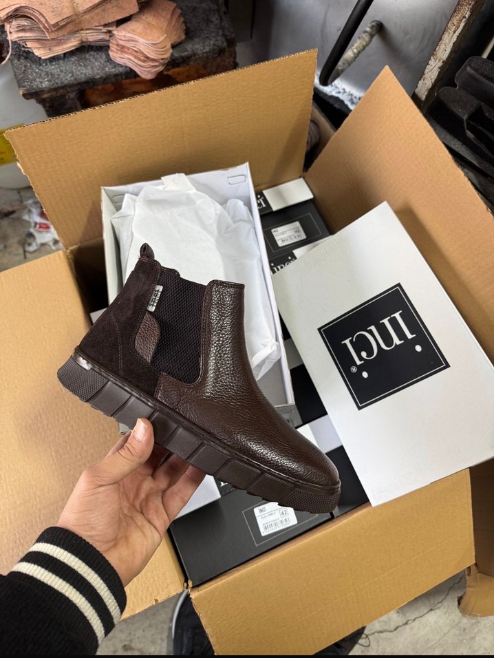 Kahverengi deri erkek bot, cırt cırtlı kapanış ve şık street wear tasarıma sahip, günlük kullanım için uygun.