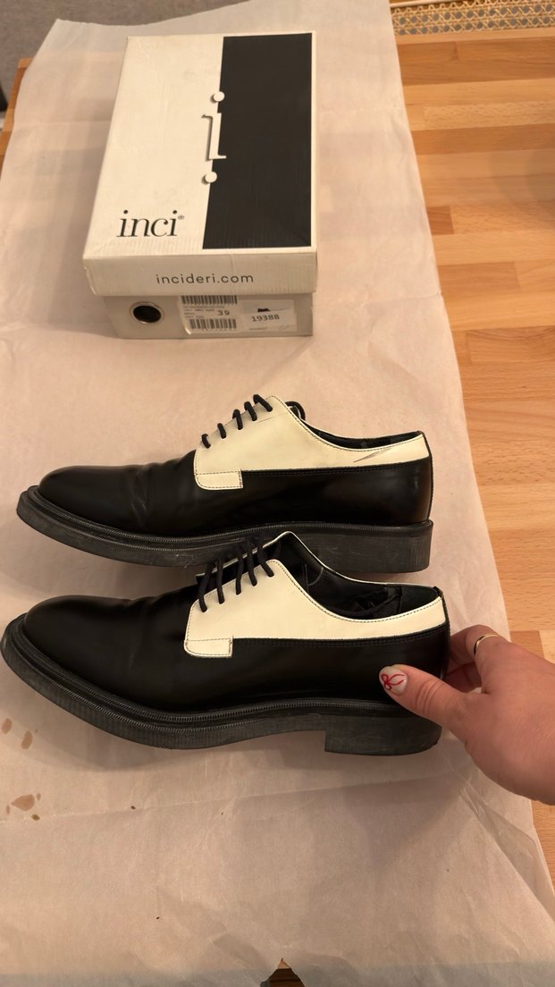 Birkaç defa giyildi. Gerçek deri. İçi durmaktan biraz soyulmuş, onun dışında sorun yok.