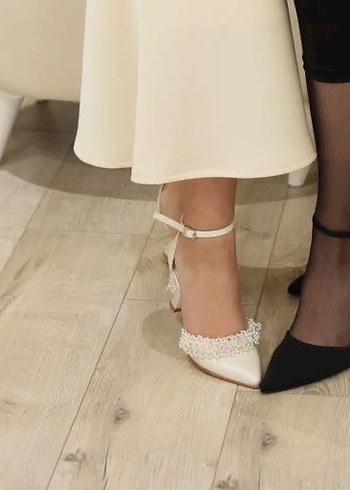 Almera’s shoes marka. evde yapılan isteme töreninde giyildi. 2 saat giyilmiştir yeni ve temizdir dışarıda hiç giyilmemiştir . 36 numara. kadeh topuk. çok rahat.