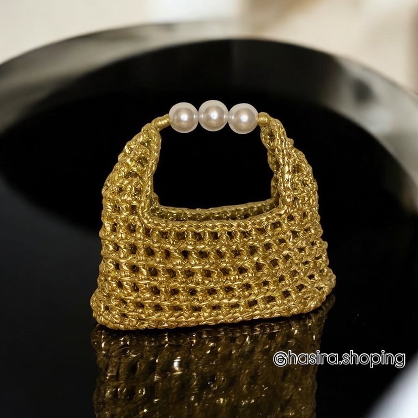 İnci detaylı kulpu ve parlak altın rengi örgü dokusuyla bohem tarzda kadın çanta. 19*21 cm ebatında çok şık bir gece çantası. Kendi el emeği ürünümdür. Marka temsilidir. #zaraçanta #geceçantası #şıkçanta #fileçanta #boncuksaplıçanta
