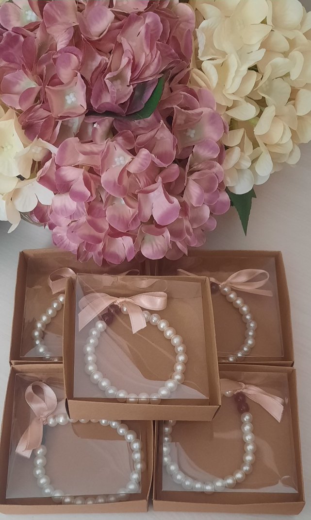 İnci Detaylı Bej Düğün Aksesuarları Nedime Bilekliği