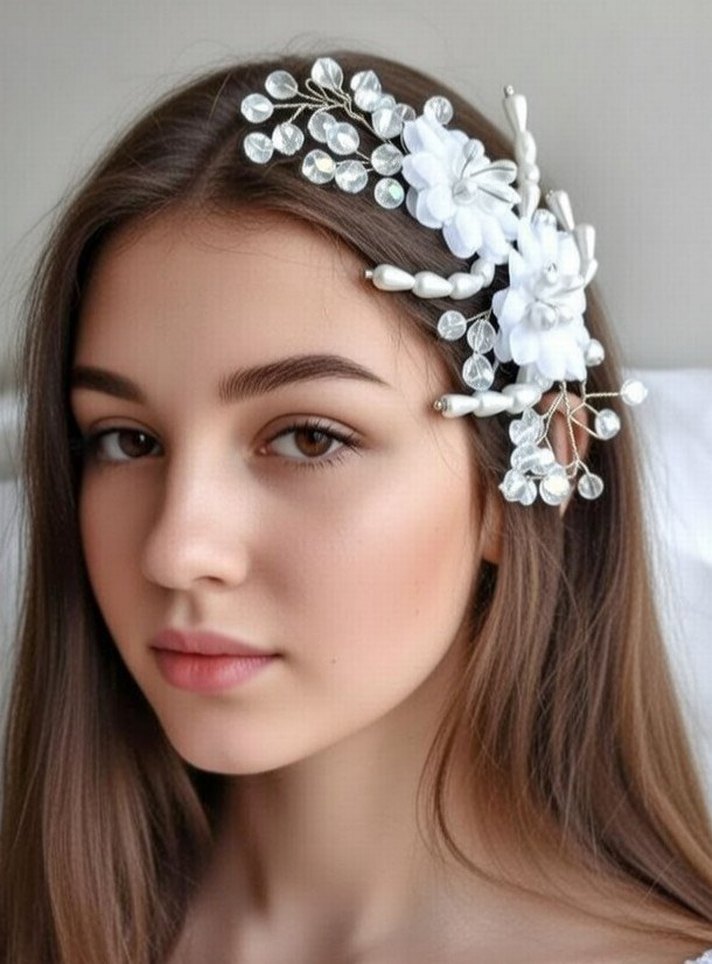 İnci Detaylı Beyaz Bohem Saç Aksesuarı