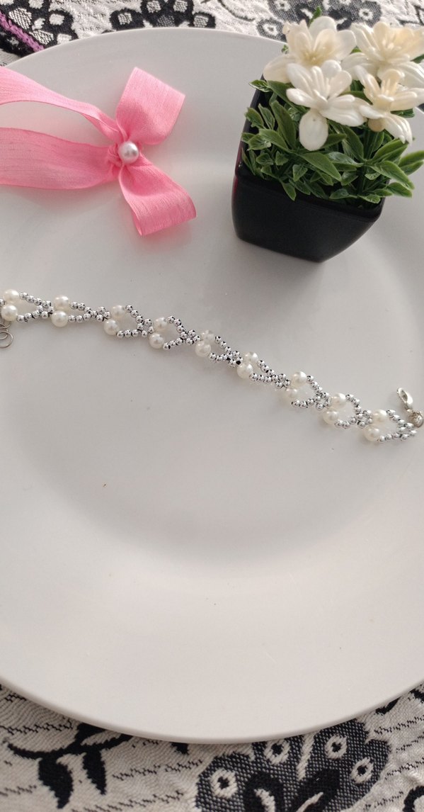 Bu kadın bilekliği, klasik zarafet ve çağdaş stili birleştiren beyaz boncuklar ve nakış detaylarına sahiptir, düğünler için uygundur. istenilen renkte yapılır sipariş için msj