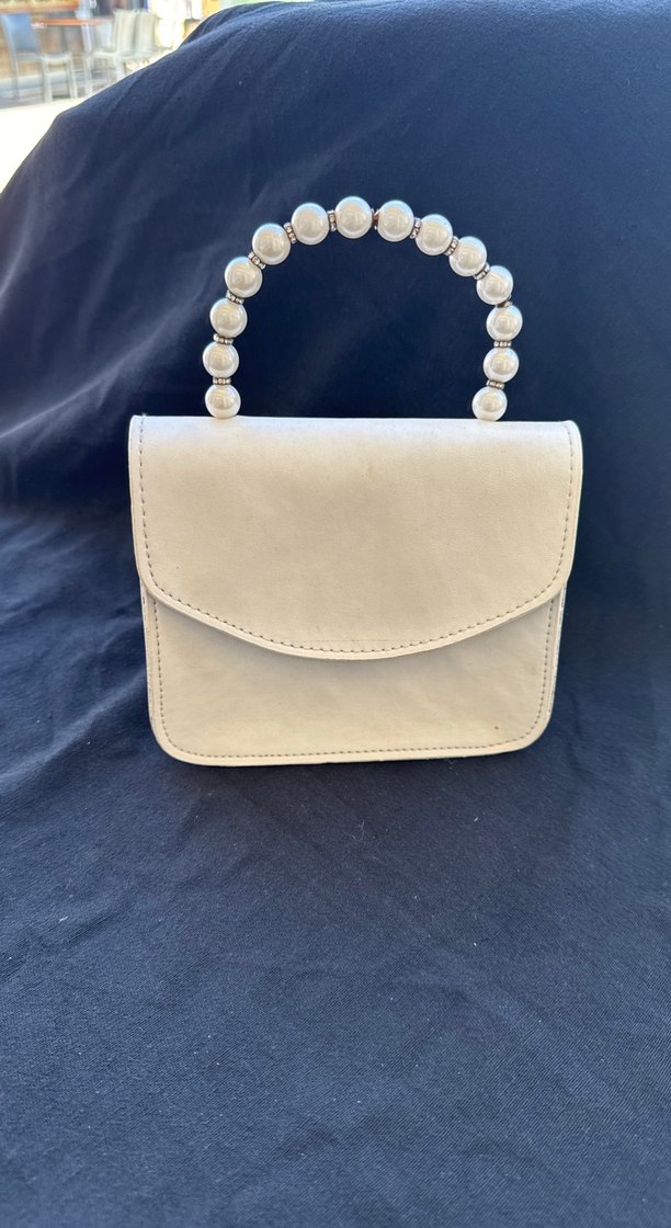 İnci Detaylı Beyaz Deri Kadın Çanta