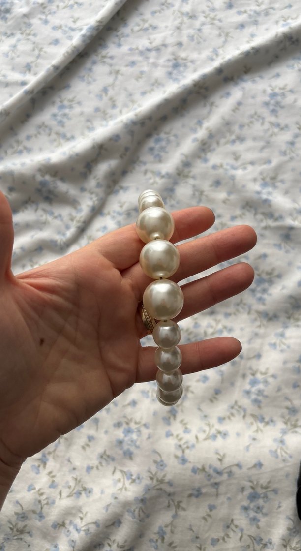Beyaz ve ipeksi dokulu büyükten küçüğe inci boncuklardan oluşan saç aksesuarı. Bohem ve Paris tarzı yansıtır. ✨