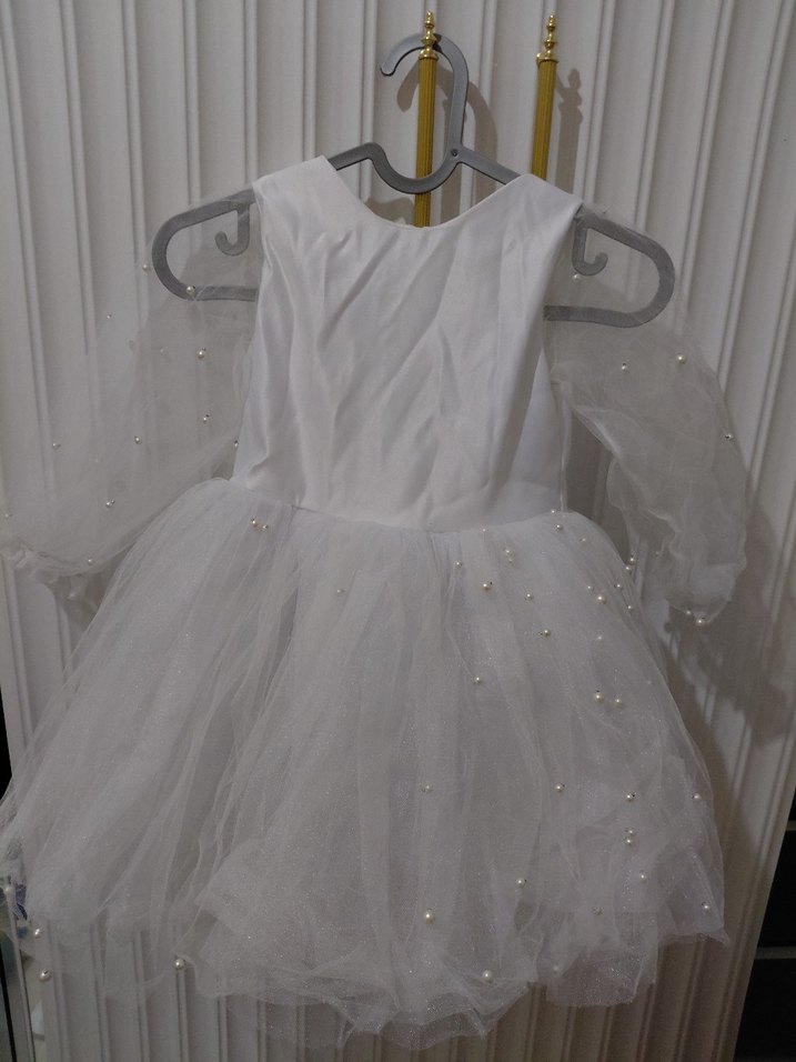 İnci Detaylı Beyaz Kız Çocuk Elbisesi
