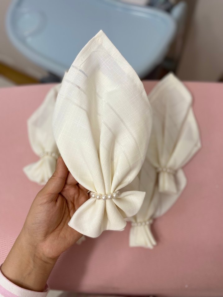 İnci Detaylı Beyaz Nakışlı Mendil peçetelik
