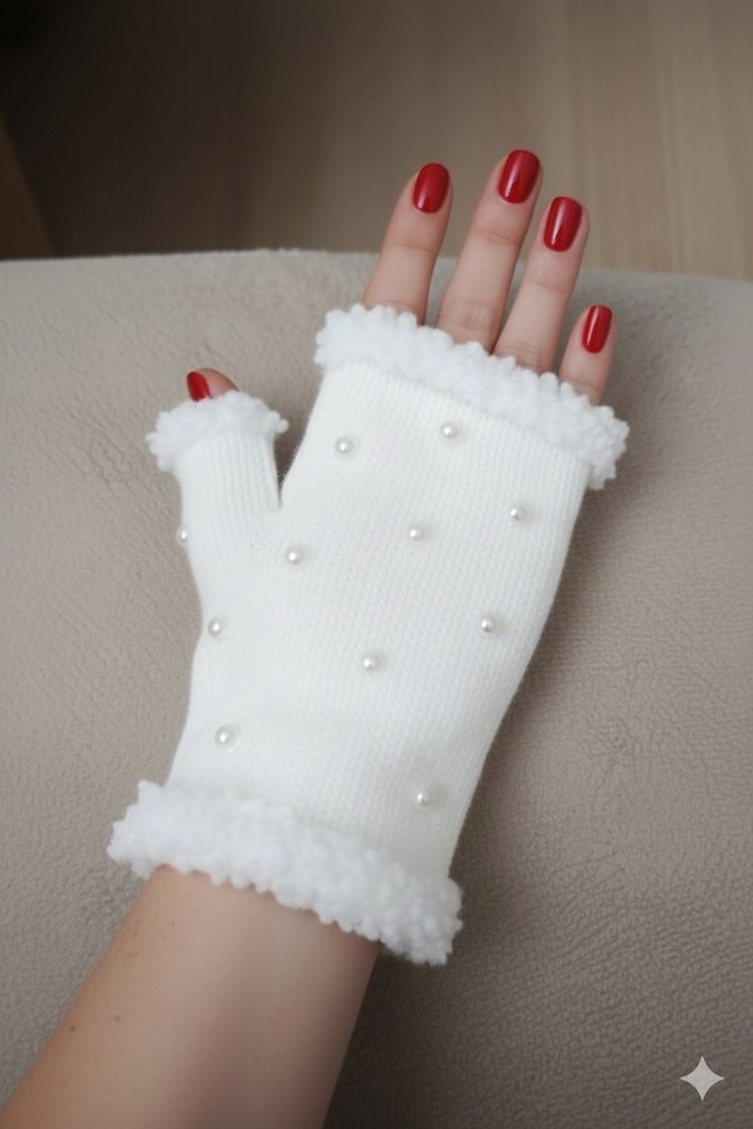 İnci detaylı beyaz örgü eldiven, yumuşak kenarlarıyla rahat ve şık bir görünüm sağlar. ❄️ ütfen sipariş verdikten sonra el ölçünüzü yazın Beden El Genişliği (cm) El Uzunluğu (cm) S 7 -7,5 16-17 M 7,5-8,5 17-18 L 8,5-9,5 18-19 XL 9,5-10,5 19-20