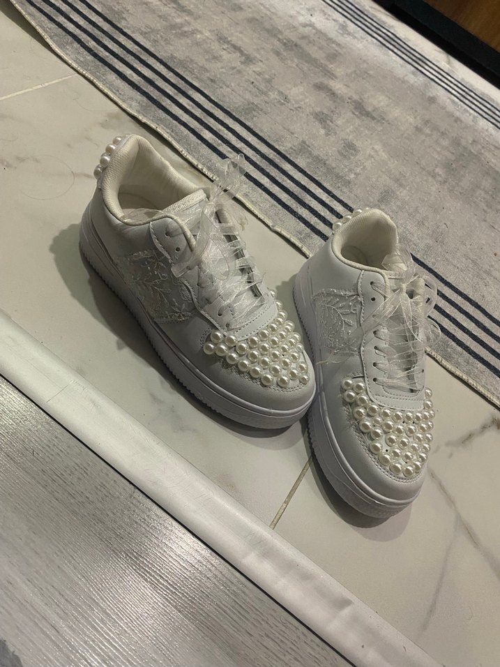 Ürünü kendim tasarladım ve sadece 1 kere kendi nişanımda gelin ayakkabısı olarak rahat oynamak için giydim , farklı tasarım isteyen müşterilere yakın çevreme tasarım ürünleri yapıyorum,