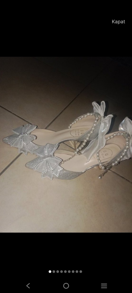 İşlemeli fiyonk detaylı, inci bilezikli beyaz stiletto topuklu ayakkabı, düğün ve özel geceler için uygun. fiyat hakkında yazın lütfen