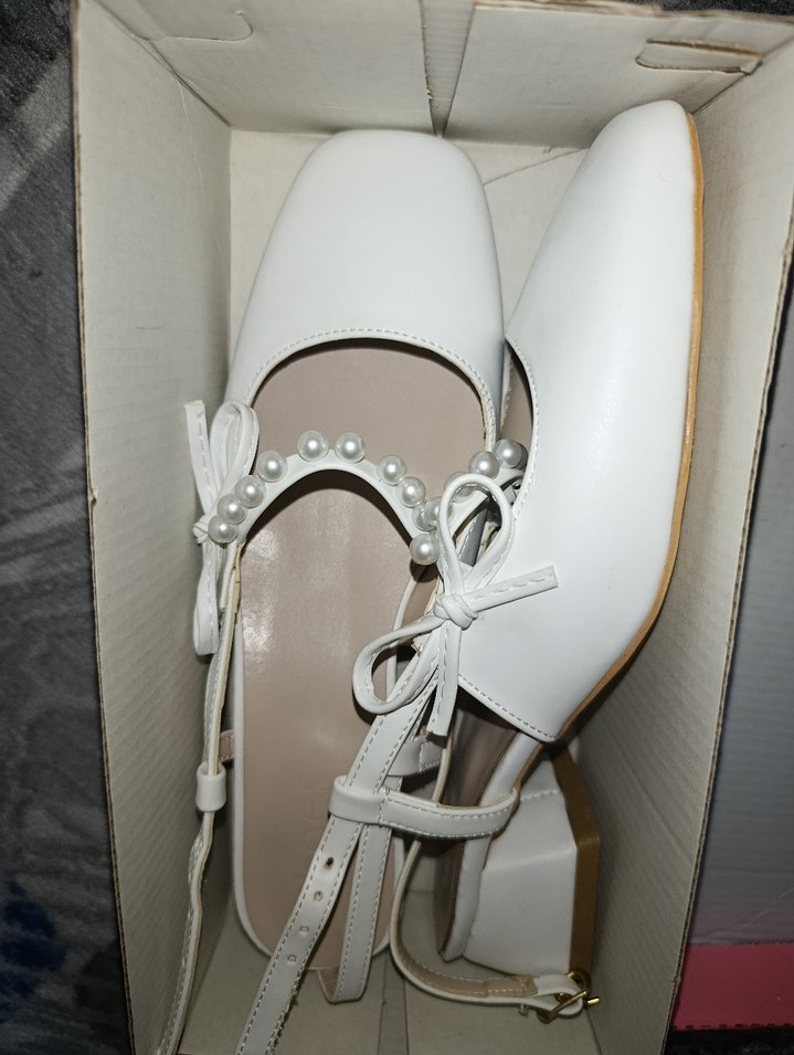 ayağı ince olanlar icinn mükemmel İnci detaylı, tokalı beyaz stiletto topuklu kadın ayakkabısı. Düğünler için klasik ve zarif tasarım sunar.