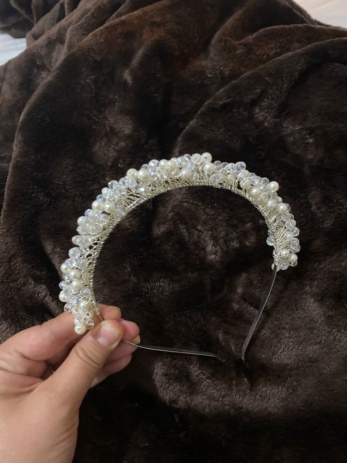 İnci detaylı, yumuşak dokulu beyaz taç. Klasik ve gotik tarz için uygun, gösterişli ve zarif bir tasarım. ✨