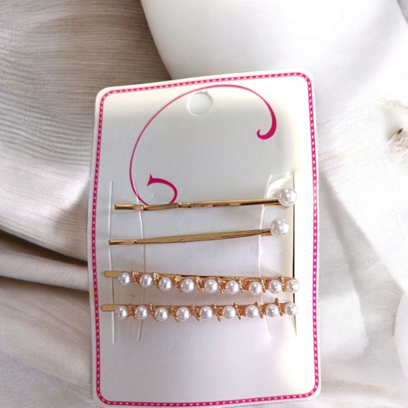 TEKLİF KABUL EDİLMEYECEK Altın renkli, beyaz boncuklu inci detaylı, minimalist ve bohem tarzda saç tokası seti. ✨