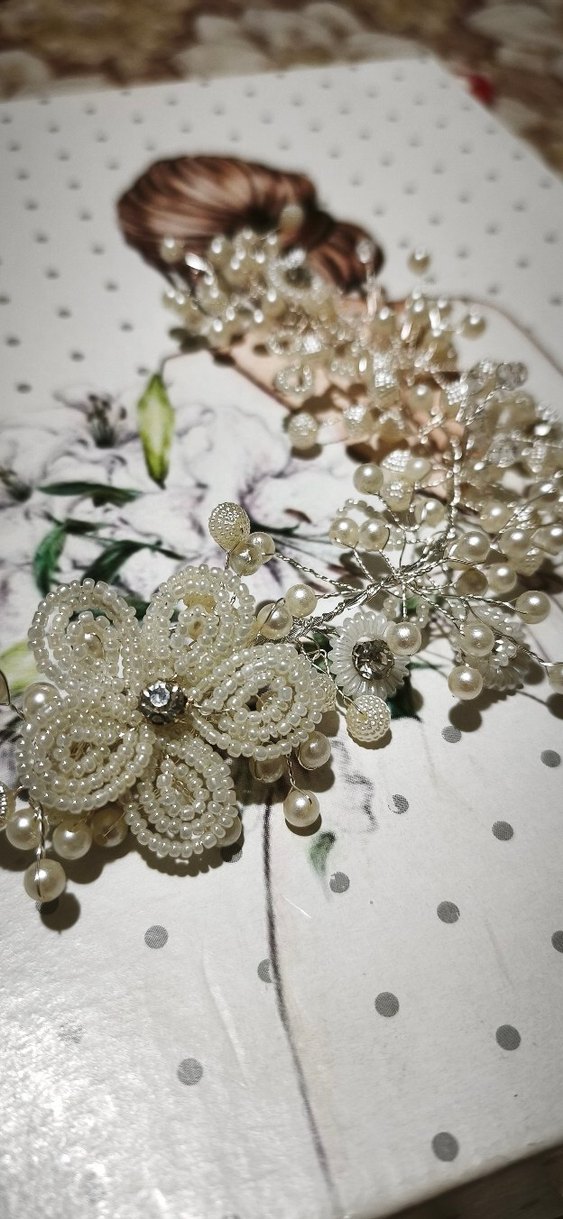 İnci detaylı, örme kumaştan yapılmış beyaz saç aksesuarı, vintage ve bohem tarzda klasik zarafeti yansıtıyor. Sifir ürün kullanılmadı tertemiz defosu yoktur hemen kargolanir çok güzel
