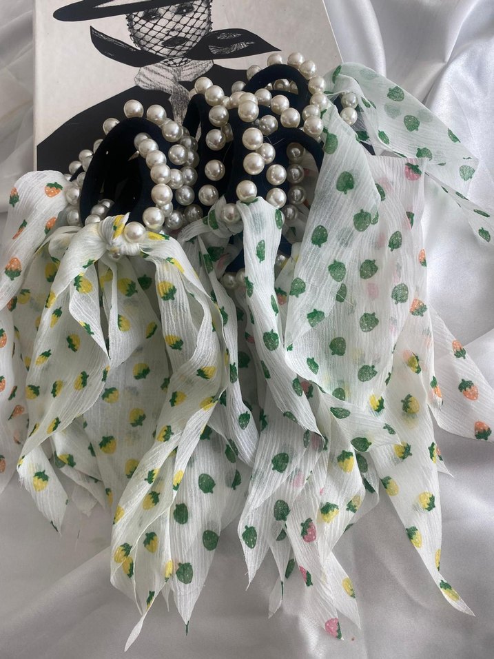 Yumuşak sentetik kumaştan yapılmış, inci detaylı ve pastel renkli puantiyeli bohem tarzı saç kurdelası. Avant-garde ve Paris tarzına uygun.