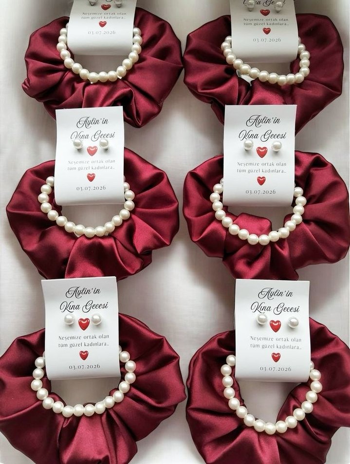 İnci detaylı bordo saten toka, parlak ve ipeksi dokusuyla klasik ve ışıltılı bohem tarz sunar.