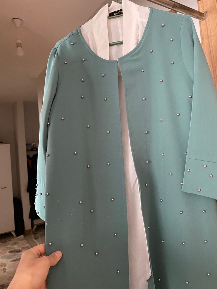 İnci detaylı mavi ceket. Bir iki kez kullanıldı herhangi bir sorunu yok çok şık duruyor