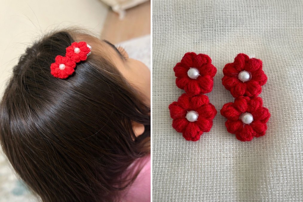 Minik saçlara kocaman bir zarafet ❤️ El emeği kırmızı çiçek tokalarımız, inci detayıyla hem şık hem çok sevimli Adet Fiyatıdır