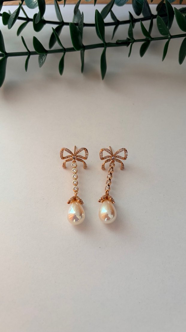 İnci Detaylı Fiyonklu Midi Küpe