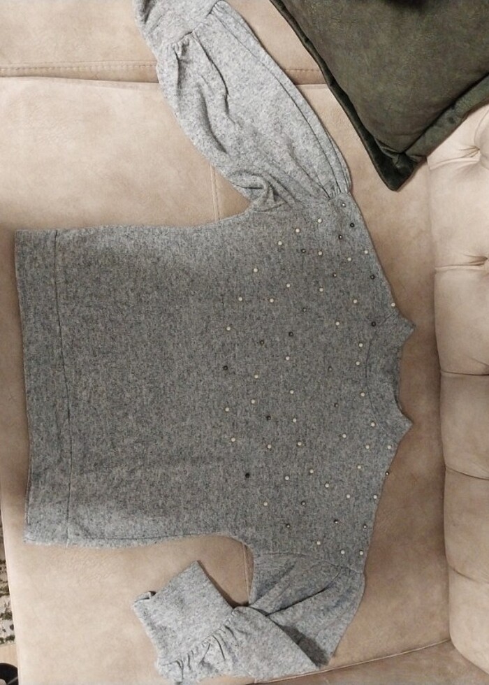 İnci detaylı gri kazak