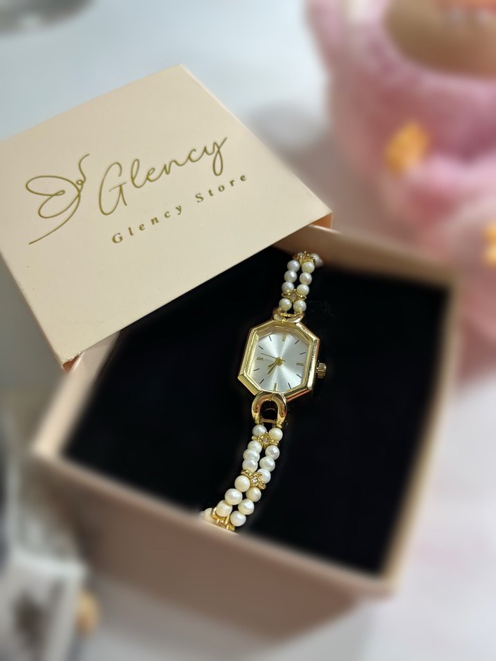 Glency markalı kadın saati, parlak altın altıgen kasa ve boncuklu kayışıyla modern klasik tarzı ve ışıltılı şıklığı bir araya getirir. Hiç kullanılmadı.