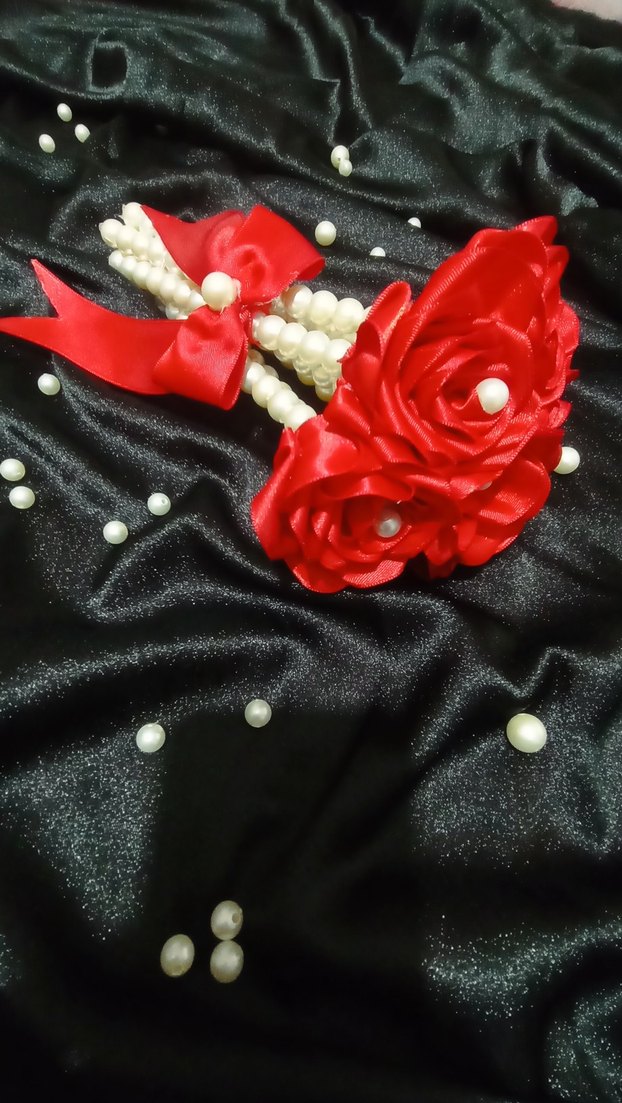 İnci Detaylı Kırmızı Saten Çiçek
