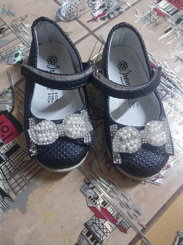 Koyu siyah 22 numara . Önünde boncuklu fiyonk ve kayışlı kapanış bulunur.