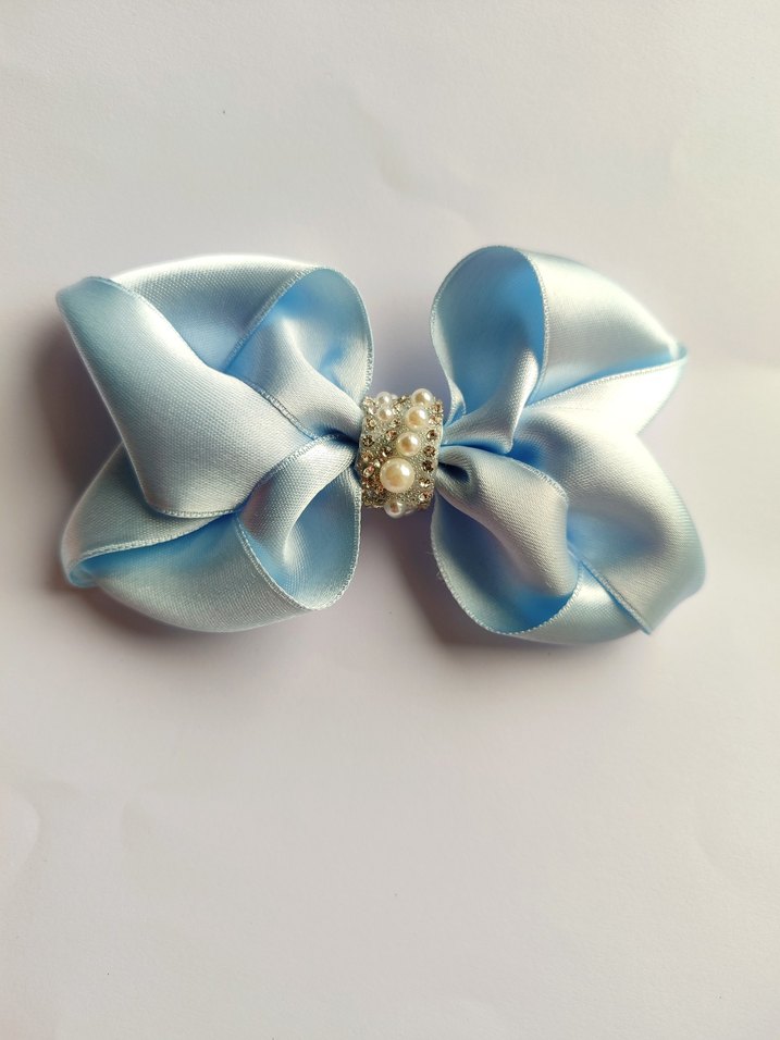 İnci Detaylı Mavi Saten Fiyonk Toka
