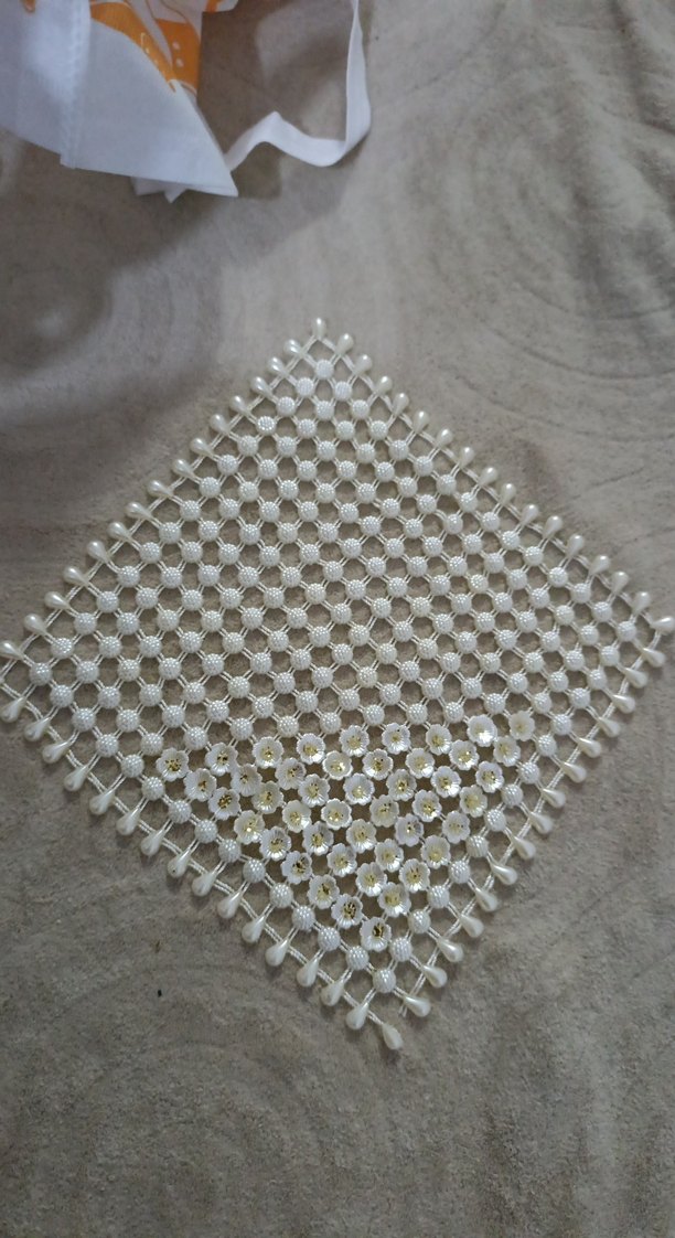 İnci detaylı boncuklarla süslenmiş örgü masa örtüsü, geleneksel bir dokunuş katmak için ideal 8 parça sorunsuz .