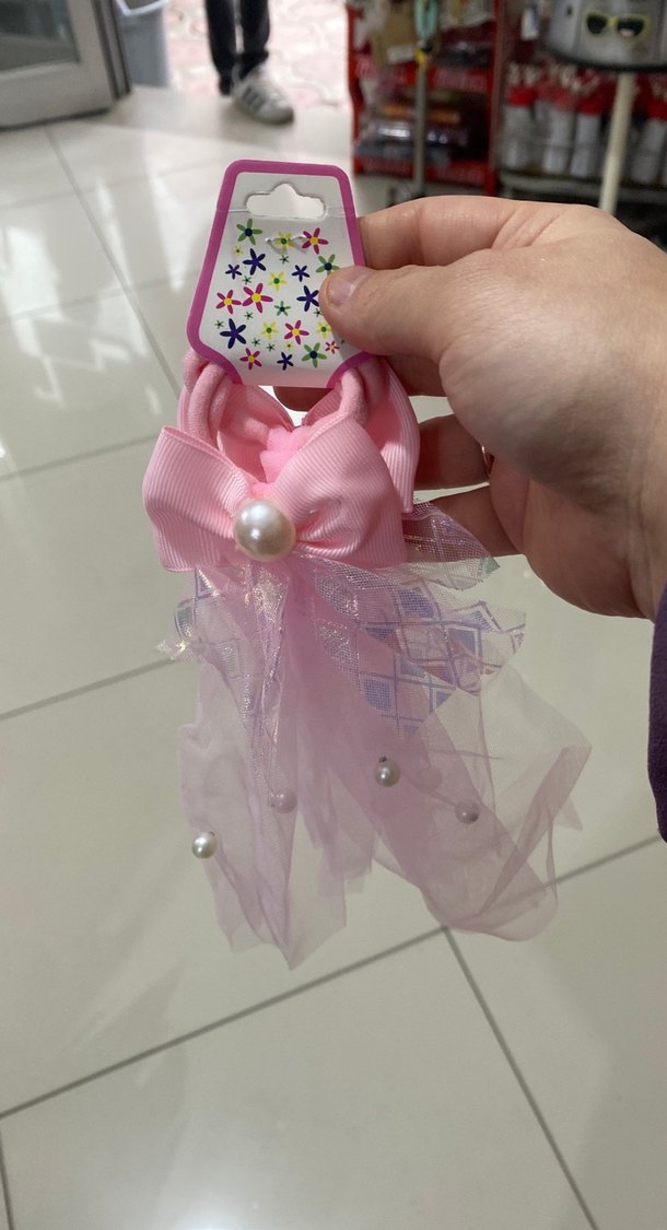 Pembe fiyonk ve inci detaylı, yumuşak tül ile süslenmiş bohem tarzda çocuk saç tokası.
