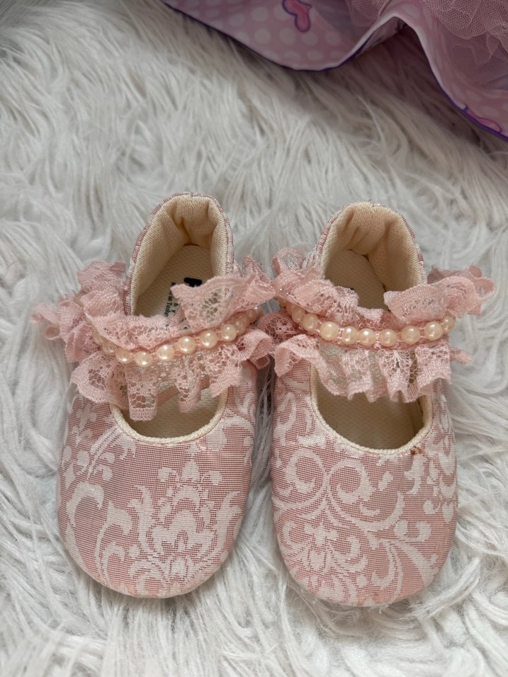 İnci Detaylı Pembe Kız Bebek İlk Adım Ayakkabısı
