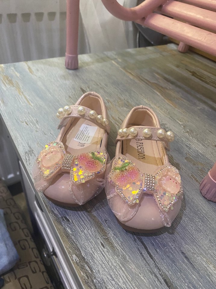 Pembe kız çocuk babeti, inci detaylı bantlar ve pul işlemeli büyük çiçekli fiyonklarla klasik zarafeti modern dokunuşla buluşturuyor.