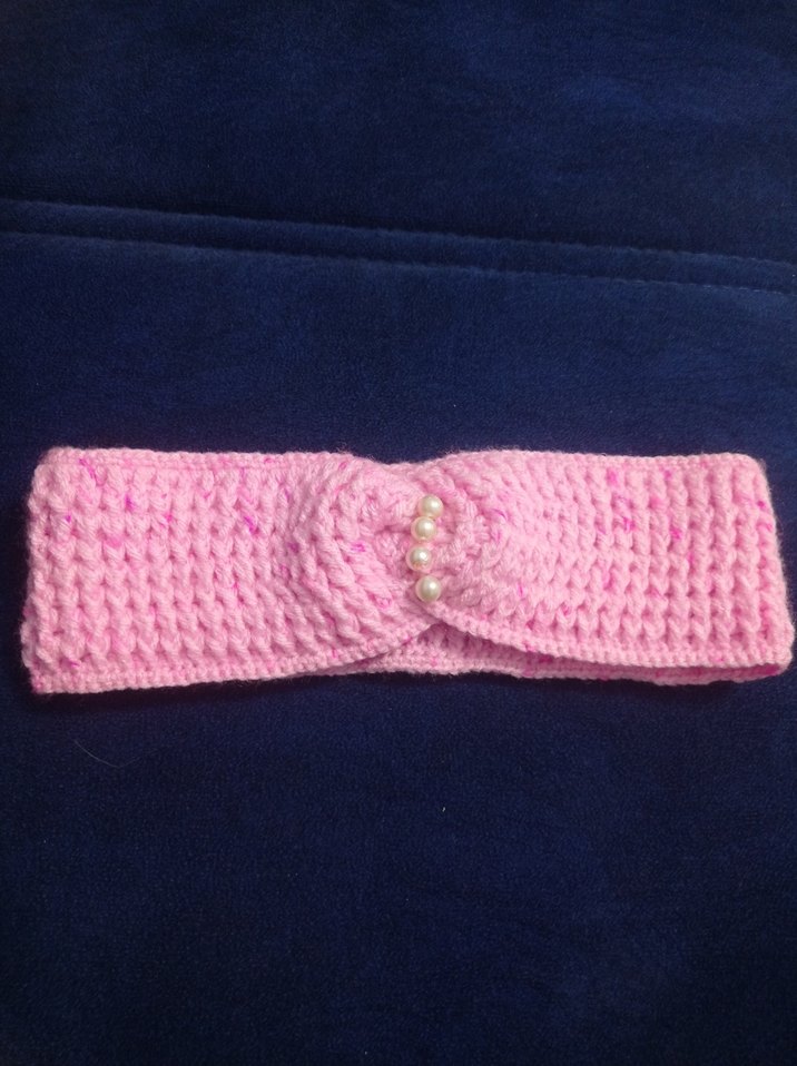 Pembe örgü saç bandı, ortasında inci detayına sahip, sade ve bohem tarzda rahat bir dokunuş sunar.