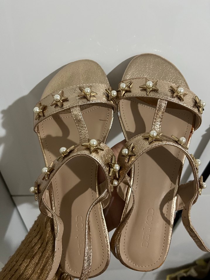 İnci süslemeli tokaları ile bej simli kadın sandalet, şık ve rahat bir seçenek sunar.