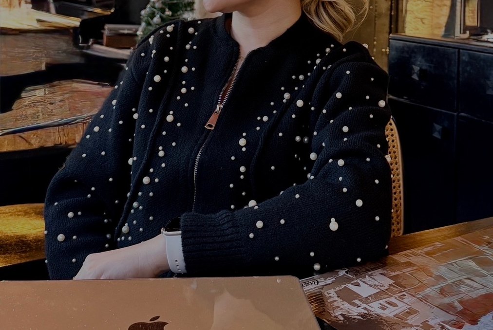 Bu siyah, uzun kollu ve kısa kesim kazak, inci detayları ve nakışlı boncuklarla süslenmiştir. Fermuarlı ve dar kesimdir, günlük sokak stili için uygundur. ✨
