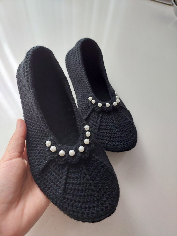 İnci detaylı siyah triko stiletto topuklu kadın terlikler, sade ve günlük kullanıma uygun, rahat ve konforlu tasarım. örgü ev babeti