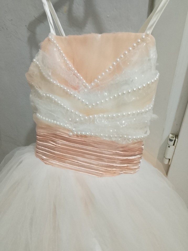 İnci Detaylı Strappy Uzun Beyaz Gelinlik