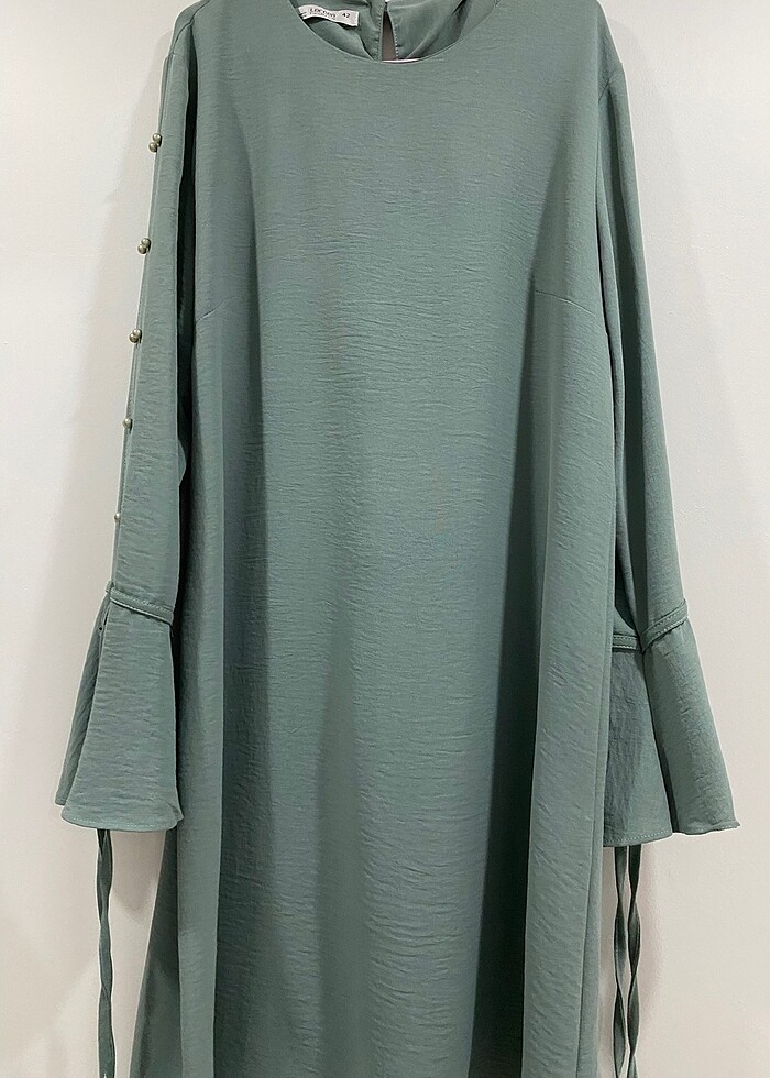 1 kere giyildi. soft renge sahip tunigin iki kolunda inci detayi var ipleri istediginiz gibi baglanabiliyor volan kollu tiril tiril bir kumasi var. hicbir deformesi yok zaten bir kere kullanildi,tertemiz 42: xl bedeni marka temsili