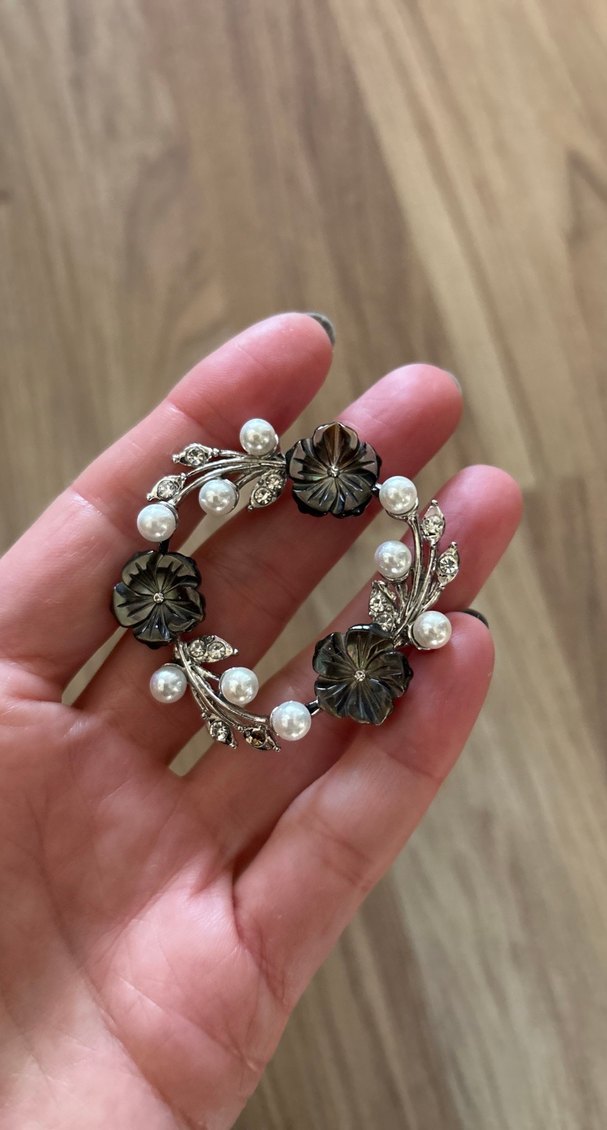 İnci Detaylı Vintage Çiçekli Broş