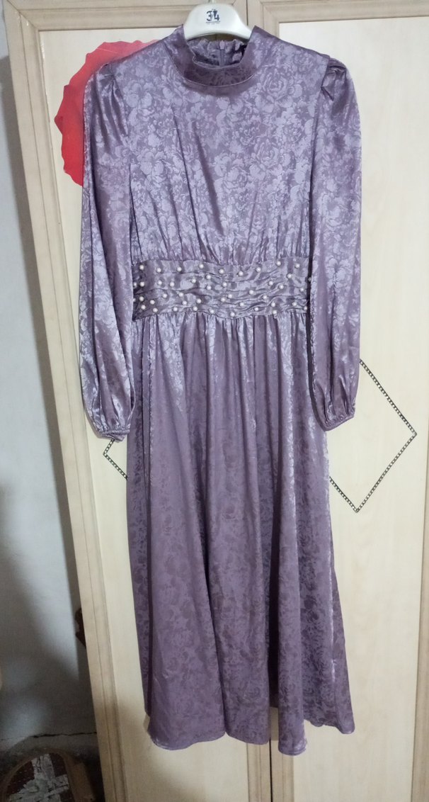 inci detayli vintage Mor Uzun Kollu Elbise, abiye