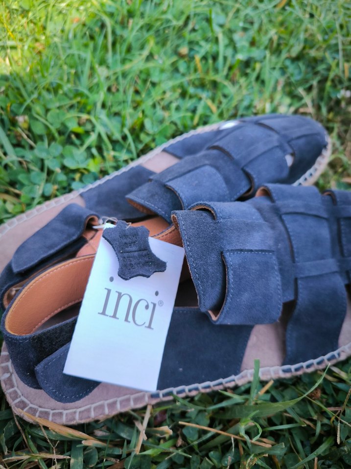 Gri süet erkek sandalet, tokalı detaylara sahip. Rahat ve dış mekan kullanımı için uygun. Marka: inci.
