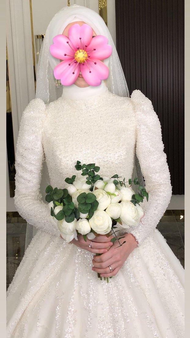 Uzun kollu A kesim beyaz gelinlik İnci işlemelidir Duvak da yanında verilir. Sıcaktan bel kısmı sararmış biraz