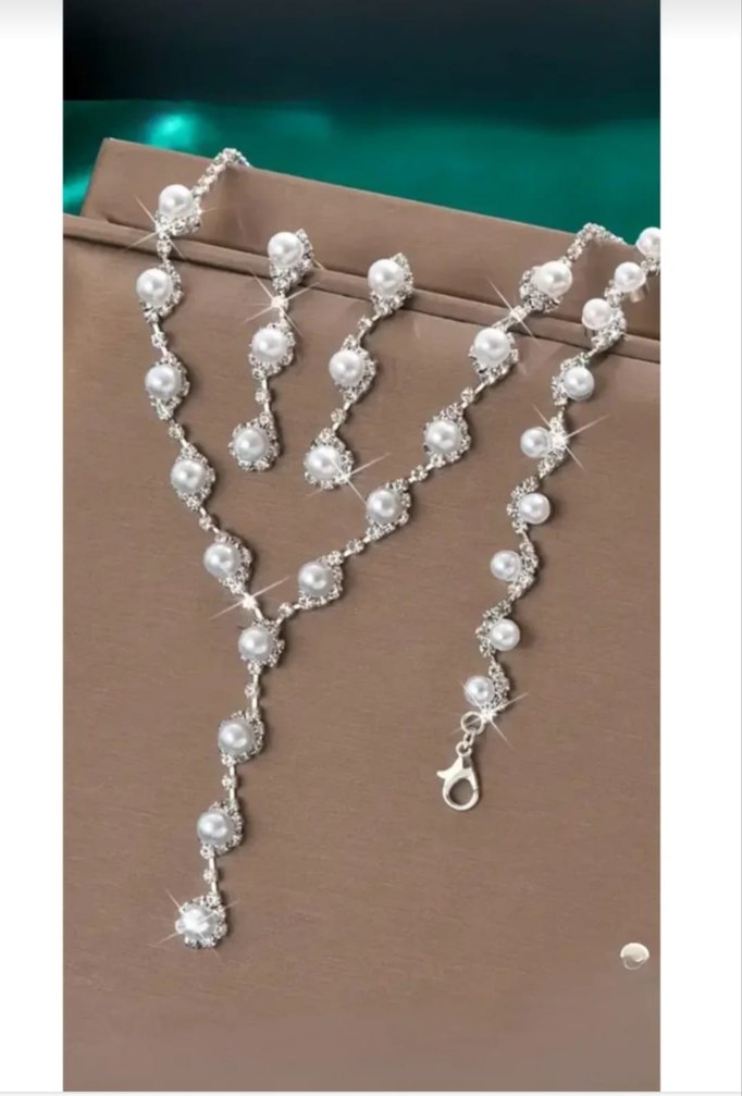 İnci işlemeli beyaz boncuklarla süslenmiş kadın takı seti, düğün ve klasik zarafet için uygundur.