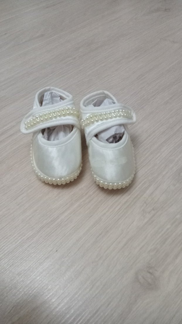 Beyaz, parlak yüzeyli kız çocuk özel ayakkabısı. İşlemeli desenler ve inci detayları bulunur. Rahatlık için kauçuk malzemeden yapılmıştır. #ilkadım#patik#gap#balmain#koton#bershka#yenidogan#hastaneçıkışı#