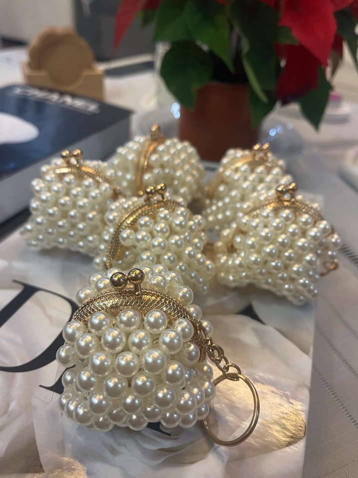 Beyaz örgü kadın çantası, inci işlemeli ve boncuk detaylı, modern klasik tarzda, hediyelik İçerisi boş yada badem şekerli yapılır Adet fiyatıdır İstenilen adette ürün özel hazırlanır