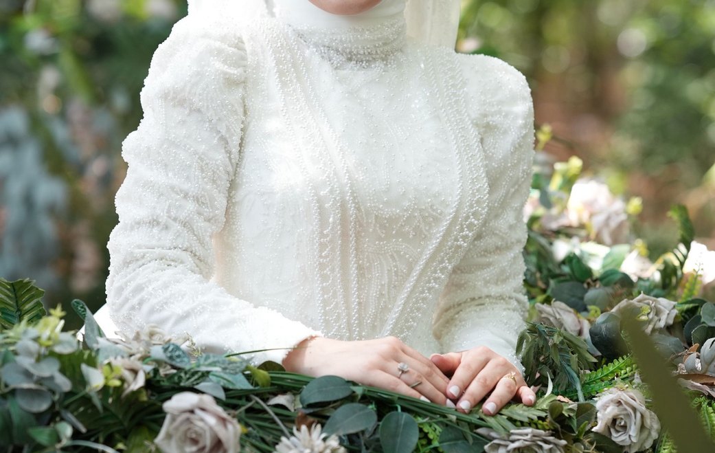 İnci İşlemeli Beyaz Uzun Kollu Gelinlik