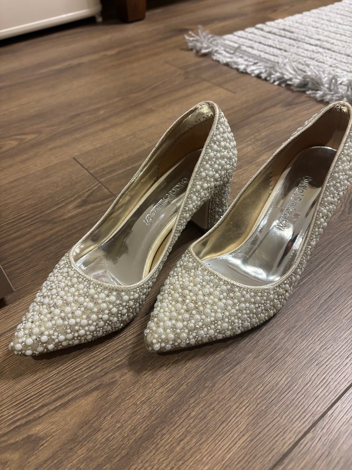 İnci işlemeli, işlemeli detaylara sahip beyaz topuklu kadın ayakkabısıdır. Düğün ve özel günler için uygundur. ✨ Taraklı ayaklara önerilmez.